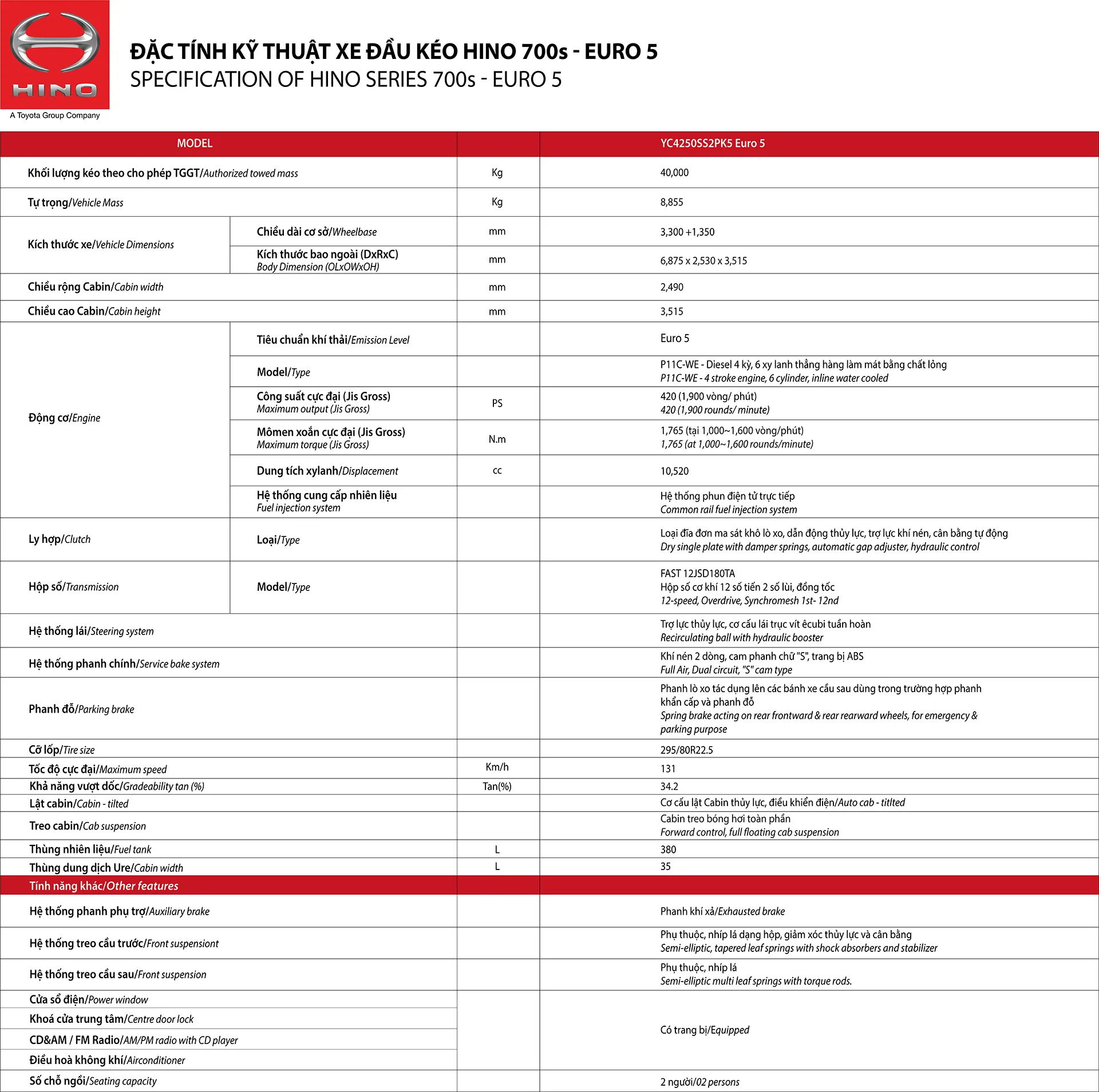 - Khối lượng kéo theo tối đa: 39.000 KG
