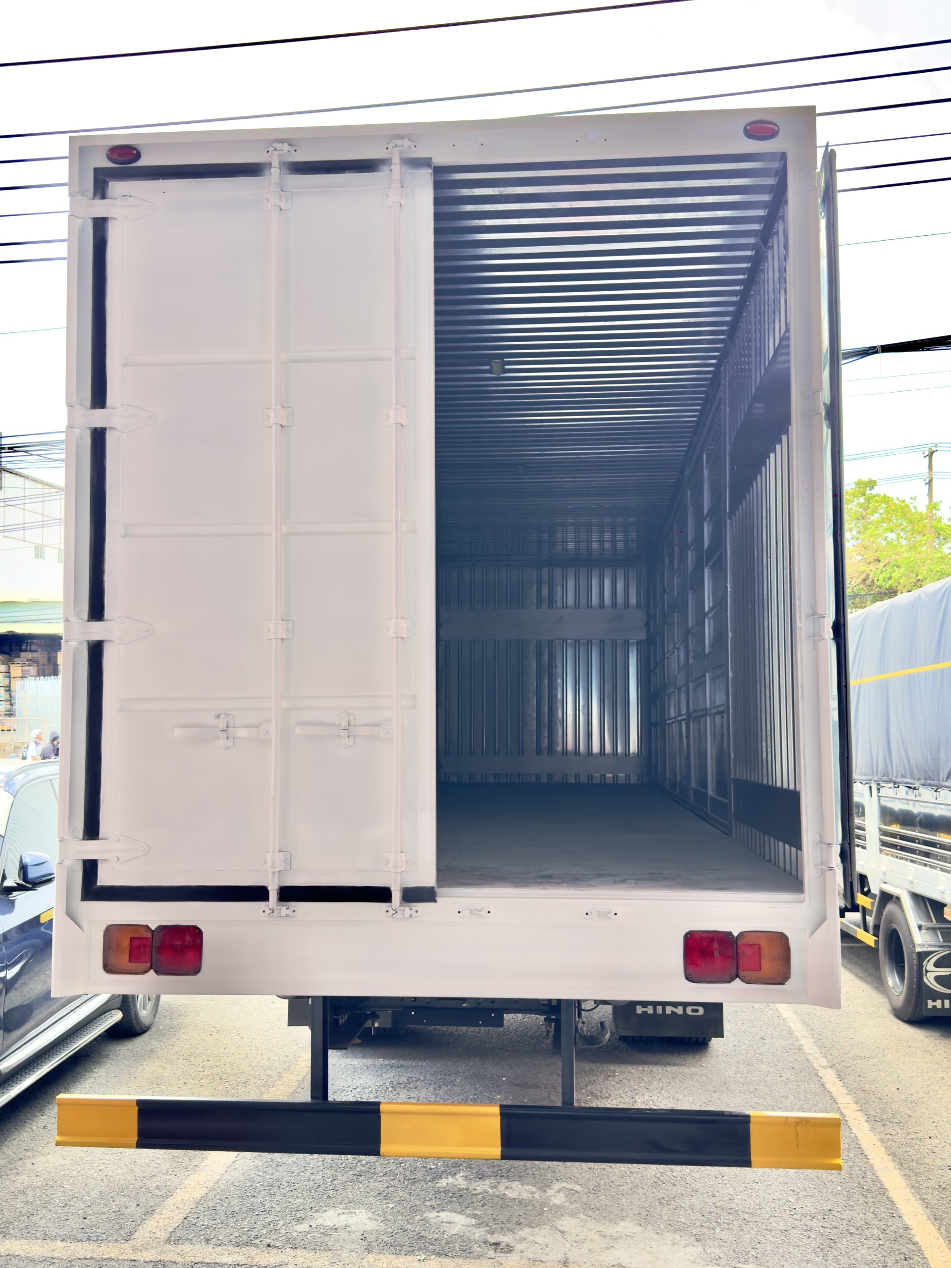 Để đáp ứng với những loại mặt hàng cồng kềnh tải trọng hàng hóa không quá nặng thì nhà Hino đã cho ra mắt sản phẩm Hino Fg dài 10m mở 3 cánh dạng container chiều dài lọt lòng thùng hàng maximum lên đến 10m, chiều cao lọt lòng thùng hàng 2,5m. Thiết kế mở cửa hông 3 cánh dễ dàng cho lên xuống hàng hóa nhanh gọn.