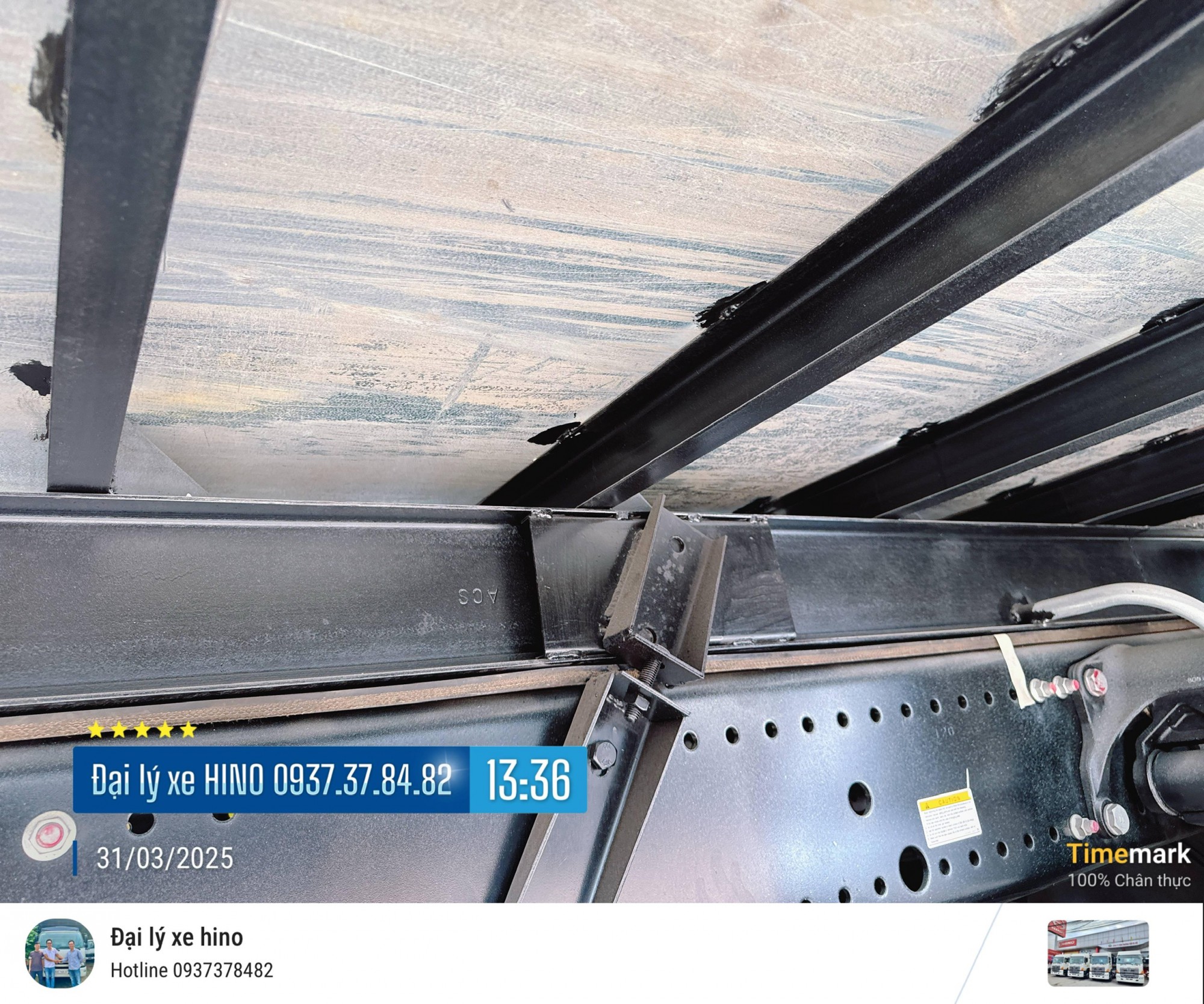 Đà dọc của thùng hàng được thiết kế với đà I150 nâng mức chịu tải của thùng hàng đảm bảo kết cấu vững chắc.